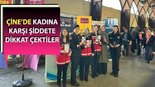 Aydın’ın Çine ilçesinde kadına yönelik şiddete dikkat çekmek için stant açan Çine Sosyal Hizmetler M...