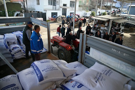 Aydın Büyükşehir Belediyesi, küçük ölçekli aile işletmelerinin özellikle son günlerde artışının önüne geçilemeyen yem fiyatlarından dolayı üretimi bırakmaması için adımlar atmaya devam ediyor. Dağıtımlar, dövizle birlikte artan ve küçük aile işletmelerini zor durumda bırakan yem fiyatlarındaki artışa karşı Germencik’in Çamköy Mahallesi’nde başlatıldı. Geçen yıl da yapılan hibe desteği bu kez pilot projenin devamında Germencik ve İncirliova ilçelerindeki tüm küçük işletmeleri kapsayacak.