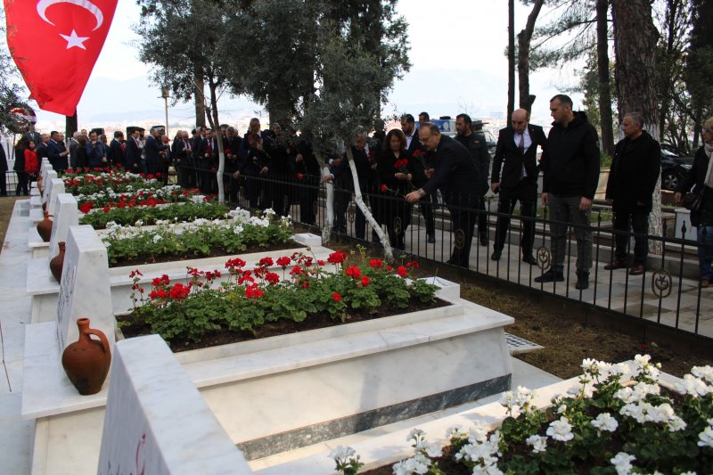 Konuşmaların ardından şehitler için dua edilirken Aydın Valisi Hüseyin Aksoy beraberindeki heyet ile birlikte şehitliklere karanfil bıraktı.