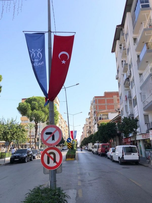 Nazilli Belediyesi ekipleri, 29 Ekim Cumhuriyet Bayramı dolayısıyla şehrin dört bir yanını Türk bayrakları ile donattı.