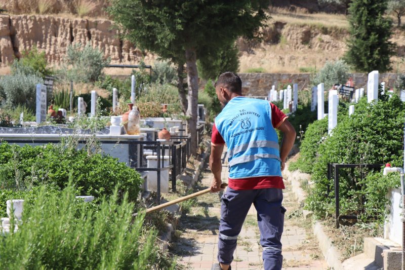 Nazilli Belediyesi ekipleri, Kurban Bayramı dolayısıyla merkez ve kırsal mahallelerdeki mezarlıkların tamamında ot biçme, budama ve temizlik çalışması başlattı.