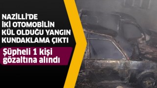 Nazilli'de 2 otomobilin kül olduğu yangın, kundaklama çıktı