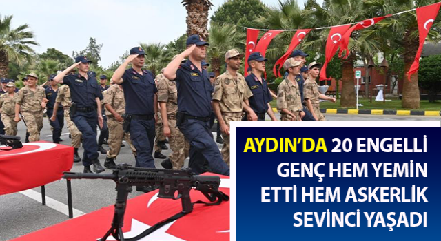 Aydın İl Jandarma Komutanlığı tarafından düzenlenen temsili yemin töreninde 20 engelli genç, hem yemin etti hem askerlik sevinci yaşadı.