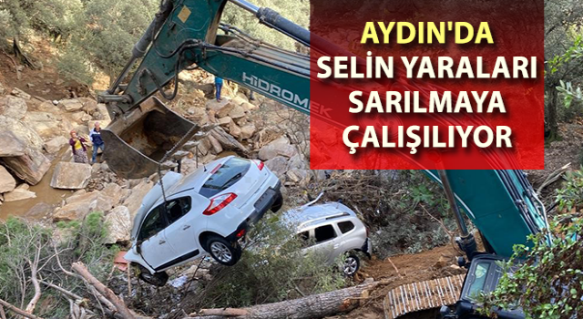 Aydın'da dün gece etkili olan sağanak yağış sonrası oluşan sel felaketinin yaşandığı bölgede çalışmalar devam ediyor. Onlarca ev, ahır ve araç ile yüzlerce dönüm tarım arazisinde yaşanan hasarın ortadan kaldırılması amacıyla başlatılan çalışmalarda, ekipler vatandaşların sıkıntılarını gidermeye çalışıyor.