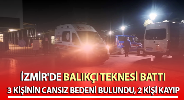 İzmir'in Dikili ilçesi açıklarında balıkçı teknesi battı. Meydana gelen olayda teknede bulunan 10 kişiden 3'ünün cansız bedeni bulunurken, kayıp olan 2 kişiyi arama çalışmaları sürüyor. Batan teknede bulunan 5 kişi ise yaralı olarak kurtuldu.