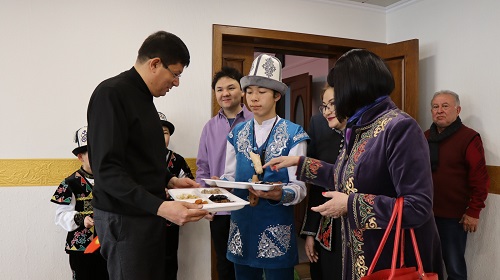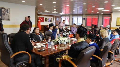 Nazilli Belediyesi tarafından düzenlenen 10. Uluslararası Nevruz Bayramı kapsamında Nazilli'ye gelen Azarbeycan, Kırgızistan ve Ankara Kuzeyin Uşakları Halk Dansları Topluluğu ile Nazilli Belediyesi Halk Oyunları Topluluğu ekipleri Belediye Başkanı Kürşat Engin Özcan’ı makamında ziyaret etti.