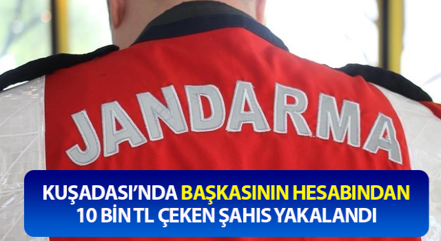 Aydın'ın Kuşadası ilçesinde bir şahsın hesabından rızası dışında 10 bin TL çekilmesi olayı ile ilgili, bir şüpheli şahıs jandarma ekipleri tarafından yakalanarak gözaltına alındı.