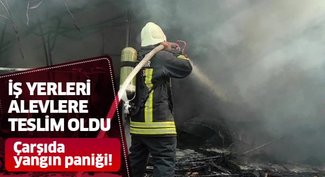 Aydın'ın Kuşadası ilçesinde bir çarşıda çıkan yangında çok sayıda iş yeri alevlere teslim olarak tamamen yandı.