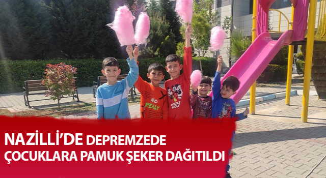 Aydın’ın Nazilli ilçesindeki Hacı Mustafa Efendizade Yurdu’nda kalan depremzede çocuklara pamuk şeker dağıtıldı.