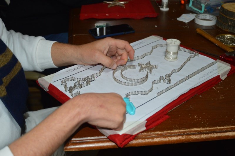 Ahşap bir plak üzerine çiviler çakılarak belirli bir model oluşturmaya çalışan Turhan, tek eliyle çivilerle elde edilen desenin içerisini tel sararak tablolar ortaya çıkarıyor. Engeline rağmen hayata küsmeyen Turhan, yaptığı çalışmalarla sergilere de katılıyor. 45 yıldır sağ kolunu kullanamadığını belirten Turhan, “Engelime rağmen hayata küsmedim. Katıldığım kurslarla hem boş zamanımı değerlendirdim, hem de vatandaşlarla iç içe olarak eve kapanmamış oldum. Bütün engelli vatandaşların çeşitli aktivite ve eğitimlere katılarak hayata tutunmalarını öneriyorum” diye konuştu.