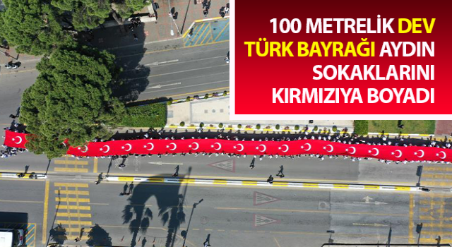 Aydın Gençlik ve Spor İl Müdürlüğü koordinesinde gerçekleştirilen 19 Mayıs kortejinde gençler tarafından açılan 100 metrelik dev Türk bayrağı, Aydın sokaklarını kırmızıya boyadı.
