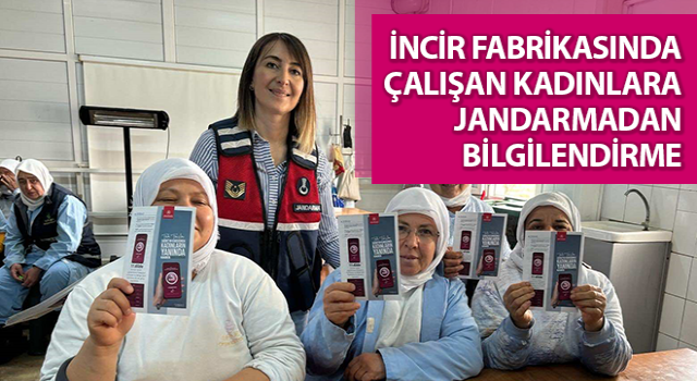 Aydın’ın Germencik ilçesinde bir incir fabrikasında çalışan kadınlara jandarma tarafından bilgilendirmede bulunuldu.