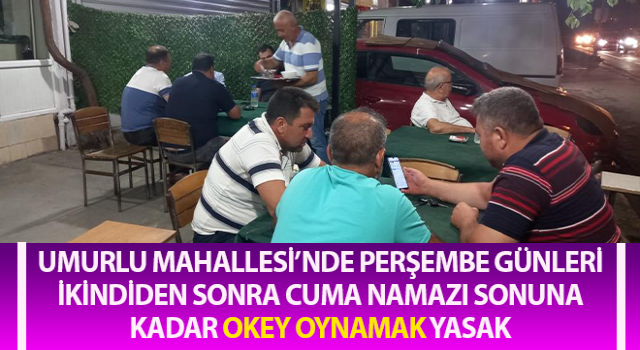 Aydın’ın Efeler ilçesine bağlı yaklaşık 15 bin nüfuslu Umurlu Mahallesi’nde perşembe günleri ikindi ezanından Cuma günü Cuma namazı bitimine kadar başta okey olmak üzere taş ve kağıt oyunları oynamak yasak. Yasağın yazılı bir kuralı olmadığını ancak yaklaşık çeyrek asırdan bu yana geleneksel olarak sürdürüldüğü belirtildi.