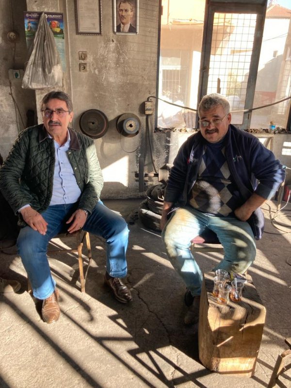 Karacasu sanayisinde Demirci esnafını ziyaret eden İYİ Parti Karacasu Belediye Başkan adayı Zeki İnal, bütün iş yerlerine girip tek tek esnafla tokalaşıp vatandaşlarla sohbet etti.