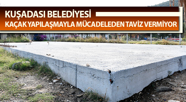 Kuşadası Belediyesi kaçak yapılaşmaya karşı mücadelesini aralıksız sürdürüyor. Güzelçamlı Mahallesi’nde imar planında yeşil alan olarak görülen parsele atılan beton temel ekipler tarafından yıkıldı.