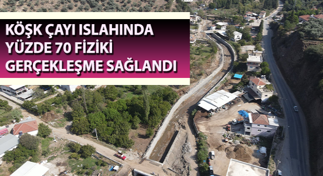 Köşk Çayı’ndaki ıslah çalışmaları çerçevesinde Uzundere Mahallesi’nde yapılan çalışmalar aralıksız devam ederken, yüzde 70 fiziki gerçekleşme sağlanan projenin tamamlanması ile birlikte kırsal mahalleler ve tarım arazileri taşkınlardan korunacak.