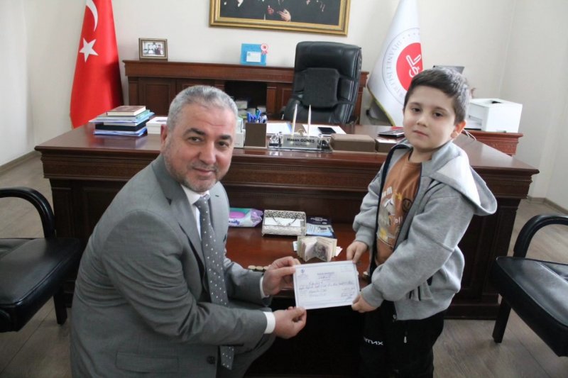 Efeler Müftülüğü 4-6 Yaş Külliye Kur'an Kursu öğrencisi Alparslan Can kumbarasında biriktirdiği parayı inşaatı devam eden Aydın İl Müftülüğü Yatılı Hafızlık Erkek Kur'an Kursuna bağışladı.