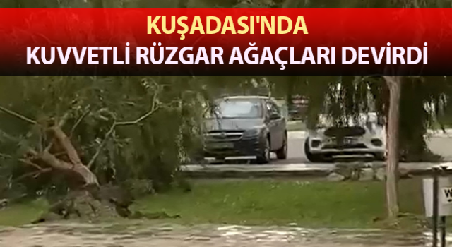 Aydın'ın Kuşadası ilçesinde sağanak yağış ile birlikte etkili olan kuvvetli rüzgar ağaçları devirdi.