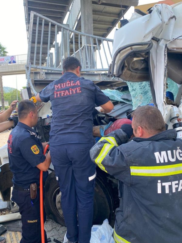 Yatağan-Milas karayolu Milas girişindeki akıllı kavşakta meydana gelen kazada, TIR sürücüsü üst geçit bariyerlerine çarpması sonucu araç içinde sıkışarak yaşamını yitirdi.