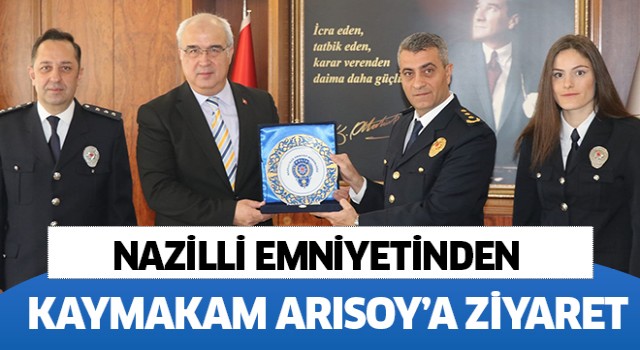 Nazilli İlçe Emniyet Müdürlüğü heyeti, Nazilli Kaymakamı Sedat Sırrı Arısoy'u "Polis Haftası" münasebetiyle ziyaret etti.
