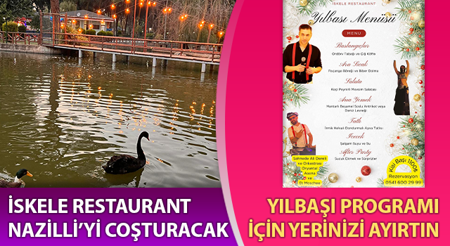 Nazilli’de misafirlerine verdiği hizmetle adından sıkça söz ettiren İskele Restaurant, gerçekleştireceği muhteşem yılbaşı özel programı hazırlıklarını tamamladı. Yoğun bir talebin olduğunu ifade eden işletme sahibi Yılmaz Eryılmaz, tüm vatandaşları yılbaşı gecesi İskele Restauranta davet etti.