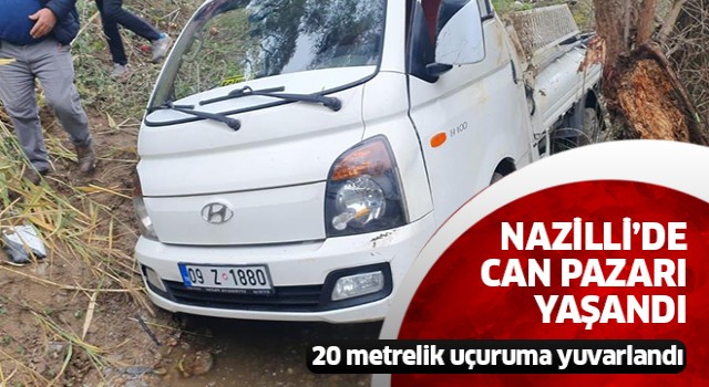 Olay, Nazilli ilçesi Ocaklı Mahallesi’nde meydana geldi. Edinilen bilgiye göre Ahmet K. (33) idaresindeki 09 Z 1880 plakalı kamyonet, sürücüsünün geri manevra yaptığı esnada, yaklaşık 20 metrelik uçurumdan aşağı yuvarlanarak, dereye düştü. Kazayı görenler durumu 112 Acil Çağrı Merkezine bildirdi. İhbar üzerine olay yerine jandarma, itfaiye ve sağlık ekipleri sevk edildi.
