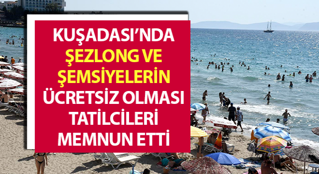 Aydın’ın turistik ilçesi Kuşadası’nda, Kuşadası Belediyesi’nin halk plajlarında bulunan şezlong ve şemsiyeleri ücretsiz yapma kararı alması memnuniyetle karşılandı. Yerel halk ile tatilciler Başkan Ömer Günel’e teşekkür etti.