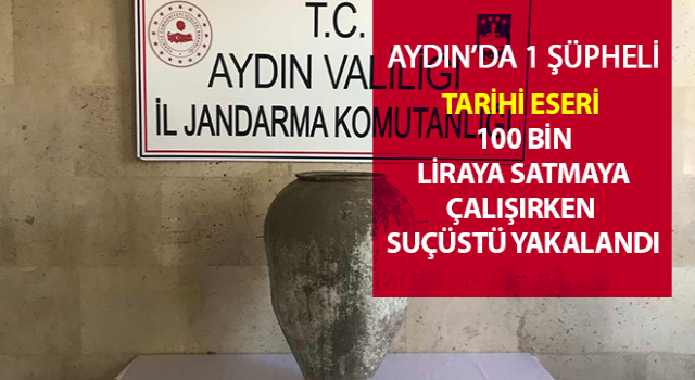 Aydın’ın Germencik ilçesinde bir adet tarihi eser olduğu değerlendirilen küpü 100 bin TL’ye satmaya çalışan şüpheli jandarma ekipleri tarafından suçüstü yakalandı.