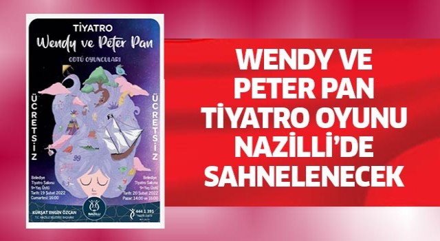 Kültür ve sanat alanında yaptığı çalışmalarla vatandaşın takdirini toplayan Nazilli Belediyesi, ODTÜ oyunları tarafından sahnelenecek olan Wendy ve Peter Pan tiyatro oyununu izleyici ile buluşturacak.